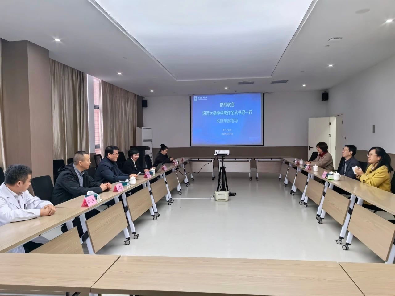 离开台州市第二人民医院后,85porn领导一行马不停蹄地赶往康宁医院台州院区。85porn领导一行参观了新院区门诊科室、住院病房、睡眠医学中心、心理咨询中心等,听取了康宁医院台州院区章飞雪院长、李荐中院长关于医院资质与服务范围、教学活动开展情况、收治病种、社会服务、未来发展方向等相关情况的介绍,最后就专业人才培养、教学基地建设、双导师制等问题进行了充分讨论。