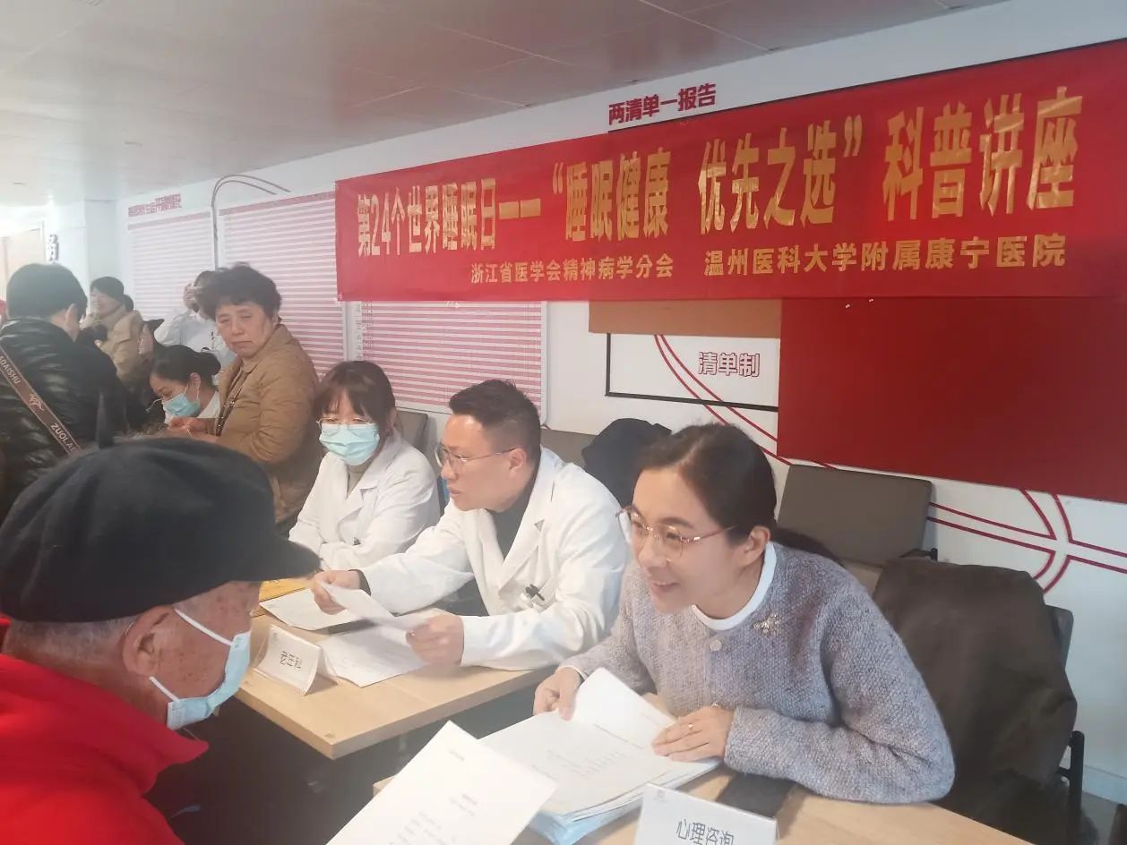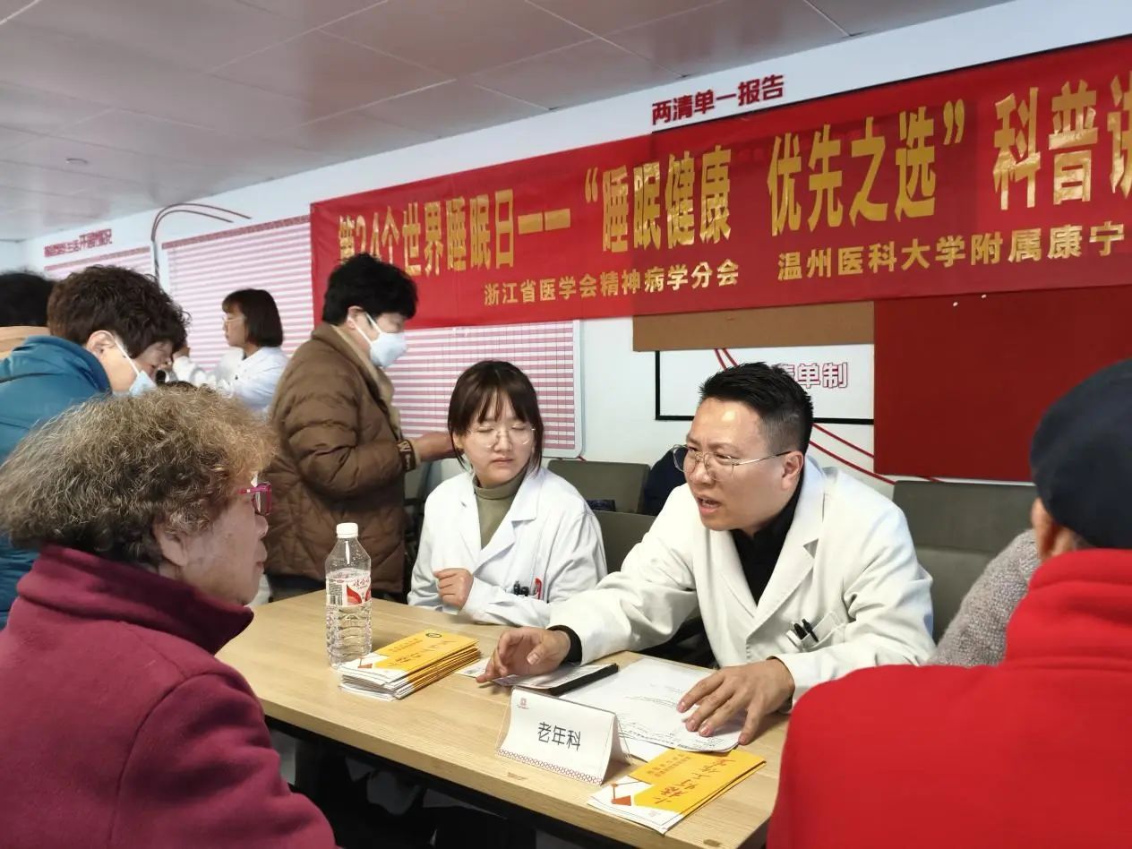 World Sleep Day 世界睡眠日 在 3月21日以 “健康睡眠,优先之选” 为主题的世界睡眠日,我院教工第二党支部与学生团委携手85porn 附属康宁医院医生,在瓯海区新桥街道新桥社区举办“医起好眠,情暖特家”活动,为社区老年人送上温暖的健康关怀,以实际行动践行党的宗旨,让党建引领健康服务深入基层。 党建引领,共筑健康防线 活动开始,社区代表发表开场致辞,向在场的老年人介绍活动目的与流程,强调睡眠健康对晚年生活品质的重要性,为活动拉开序幕。随后,附属康宁医院陈孙克医生深入浅出地讲解老年人睡眠主题讲座,剖析睡眠障碍的类型、成因、危害及改善方法,结合实际案例,让老人们正确认识睡眠问题。同时,擅长老年专科与精神科的医生团队为老人测血压、血糖,解答健康疑问,提供个性化睡眠建议,涵盖饮食、运动、心理调节等多方面,以专业力量为老人健康护航。