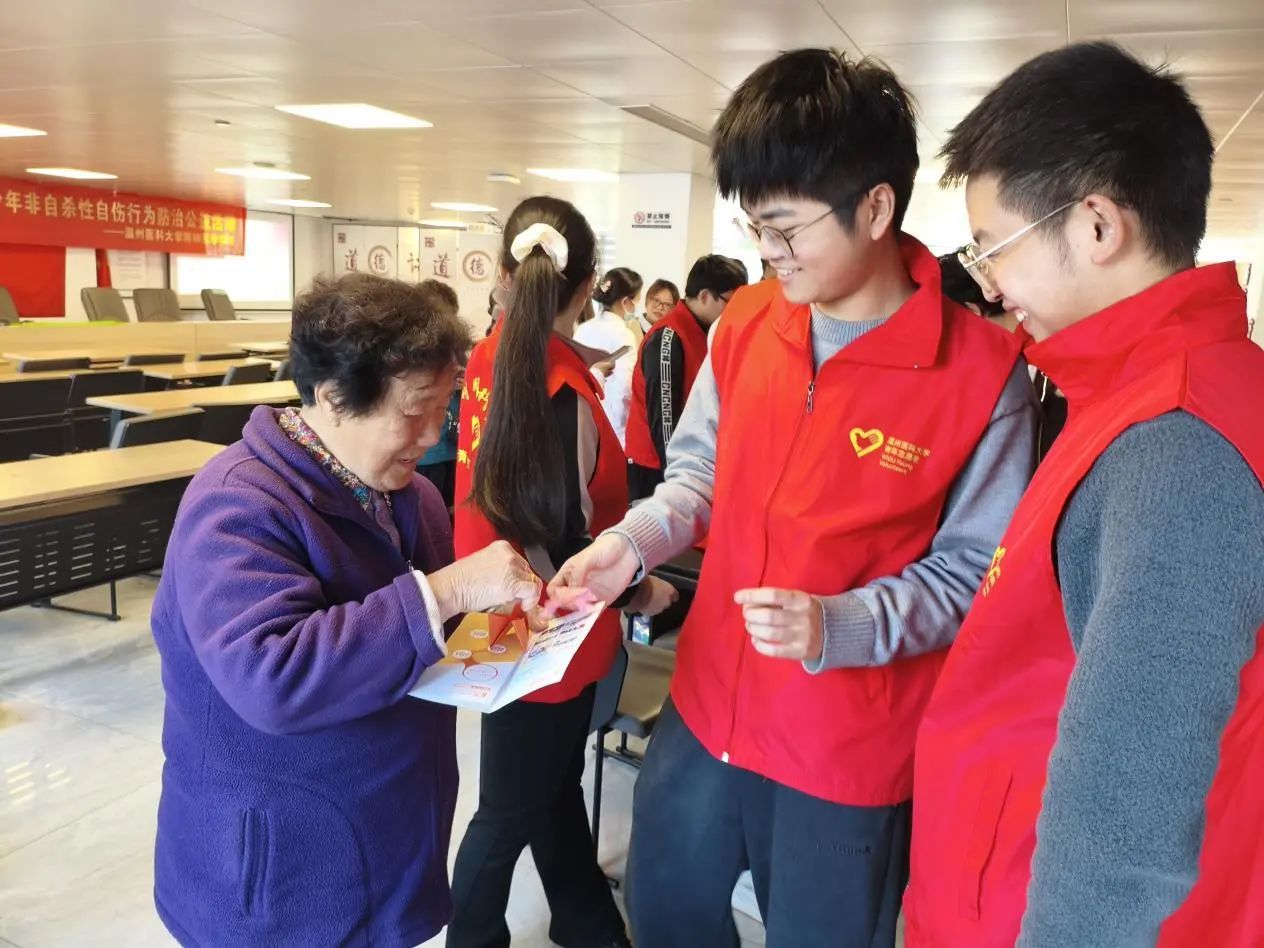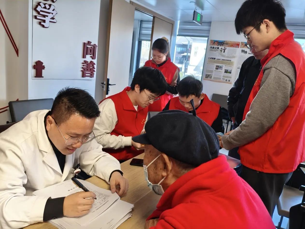 党建带团建,传承温暖力量 秉持教工党建带学生团建理念,我院大学生志愿者积极参与其中。他们耐心地教老人促进睡眠的手指操,分组指导纠正动作,确保每位老人都能准确掌握。这一过程不仅锻炼了学生志愿者的实践能力与社会责任感,更让老人们感受到来自年轻一代的关怀与陪伴。学生团员们在党员教师的带领下,将所学知识应用于实际服务,成为连接党和群众的温暖纽带。