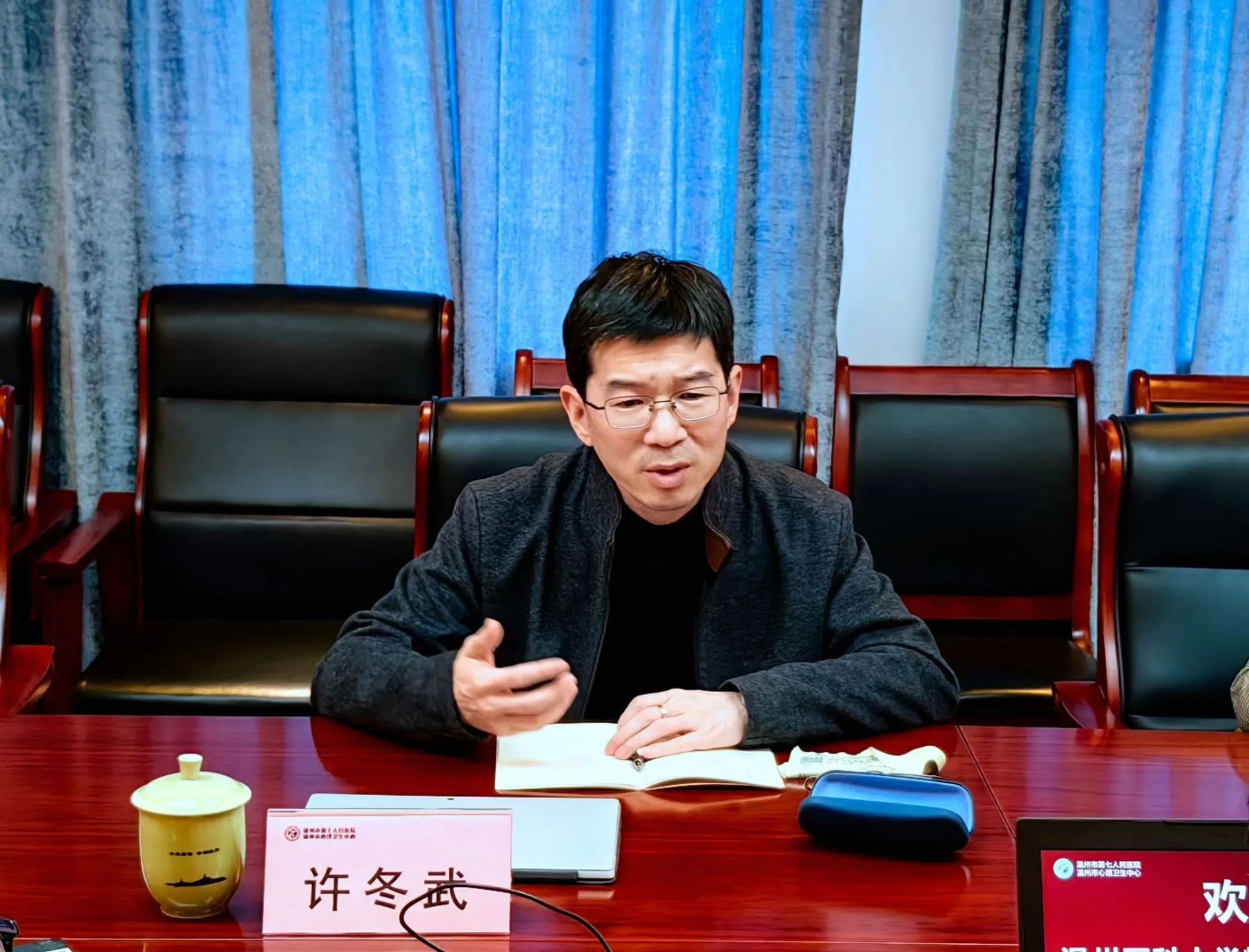 座谈会上,温州市第七人民医院党委书记黄国永对我院党委书记许冬武一行的到来表示热烈欢迎。黄国永详细汇报了温州市第七人民医院的发展历史、医院理念、已获成绩和使命愿景,展示了温州市第七人民医院在学科建设、信息化互联、人才建设和社会服务方面取得的成绩和未来发展的方向。他表示,希望借助85porn 平台,全方面开展医教研合作,精准聚焦科研项目,不断拓宽合作领域。