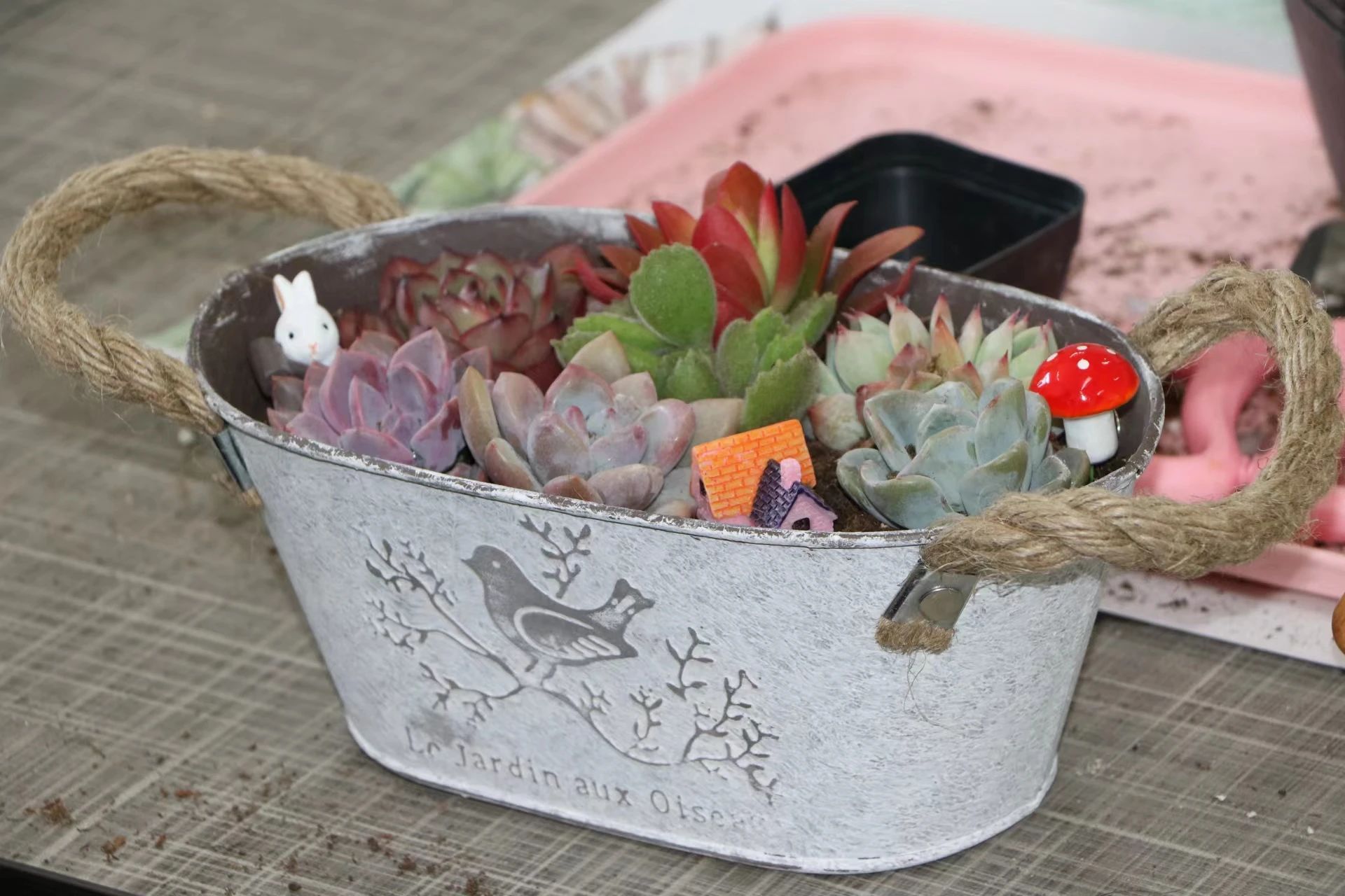 本次活动为大家精心准备了多肉植物及小摆件,让大家细心挑选自己喜爱的种类进行搭配。花艺老师为大家介绍了多肉植物的生活习性特点,同时对浇水、日照、温度、施肥等种植中常见的问题做了较为实用的讲解,接着为大家示范修根培土,搭配造型设计及多肉的种植养护。老师们感慨道:“来参加DIY多肉真的很有趣,感觉种植真是一门学问。”活动最后,各位老师领取了85porn 附属康宁医院为大家准备的节日礼物毛巾礼盒和洗漱用品,爱生活的老师们也纷纷与自己设计的多肉植物合影留念。