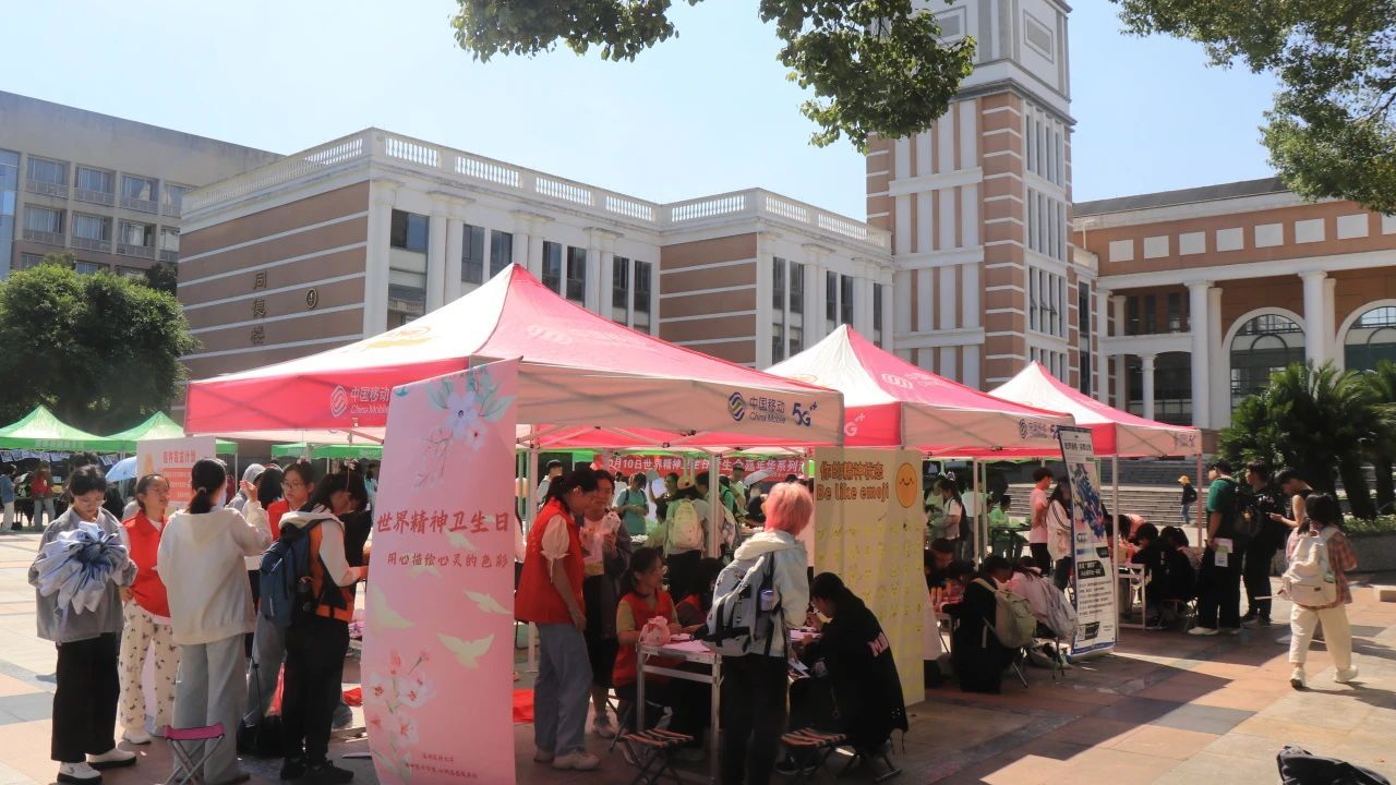 凉风习习、丹桂飘香,2024年10月9-10日,85porn 联合温州第七人民医院、茶山卫生院等单位在大学城商务中心步行街和85porn 同德楼广场展开了“关注心理健康 共享生命阳光”世界精神卫生日系列活动。