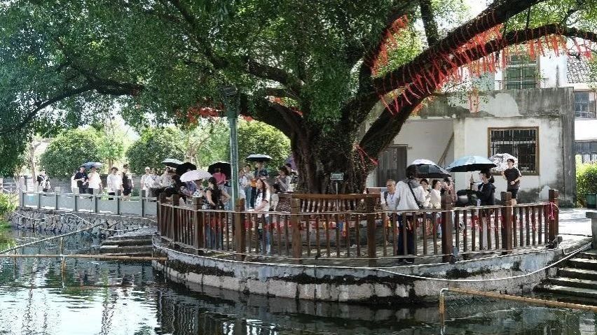 永嘉楠溪江路线的同学们在楠溪江站分别之后来到苍坡古村,正值晌午,日长篱落无人过,只有树影摇曳。然而寂静中却充满烟火气。踏着石板行走其中,可以听到菜下锅的噼啪声、闻到柴火的气味、看见小卖部柜台后刷短视频的中年人。