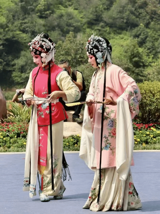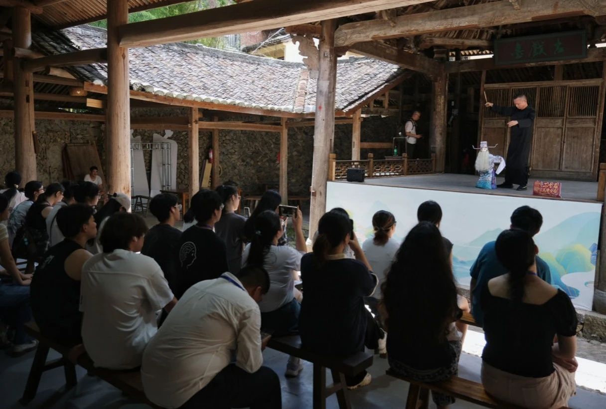 7日上午九点左右,“杭温高铁大学生旅拍团”永嘉线成员乘坐大巴到达楠溪江站。集合完毕后,永嘉昆剧团粉墨登场,带来了永昆经典折子戏曲目⟪大闹天宫⟫、⟪牡丹亭•游园⟫。悟空身段灵活,丽娘唱腔婉转,赢得阵阵喝彩。