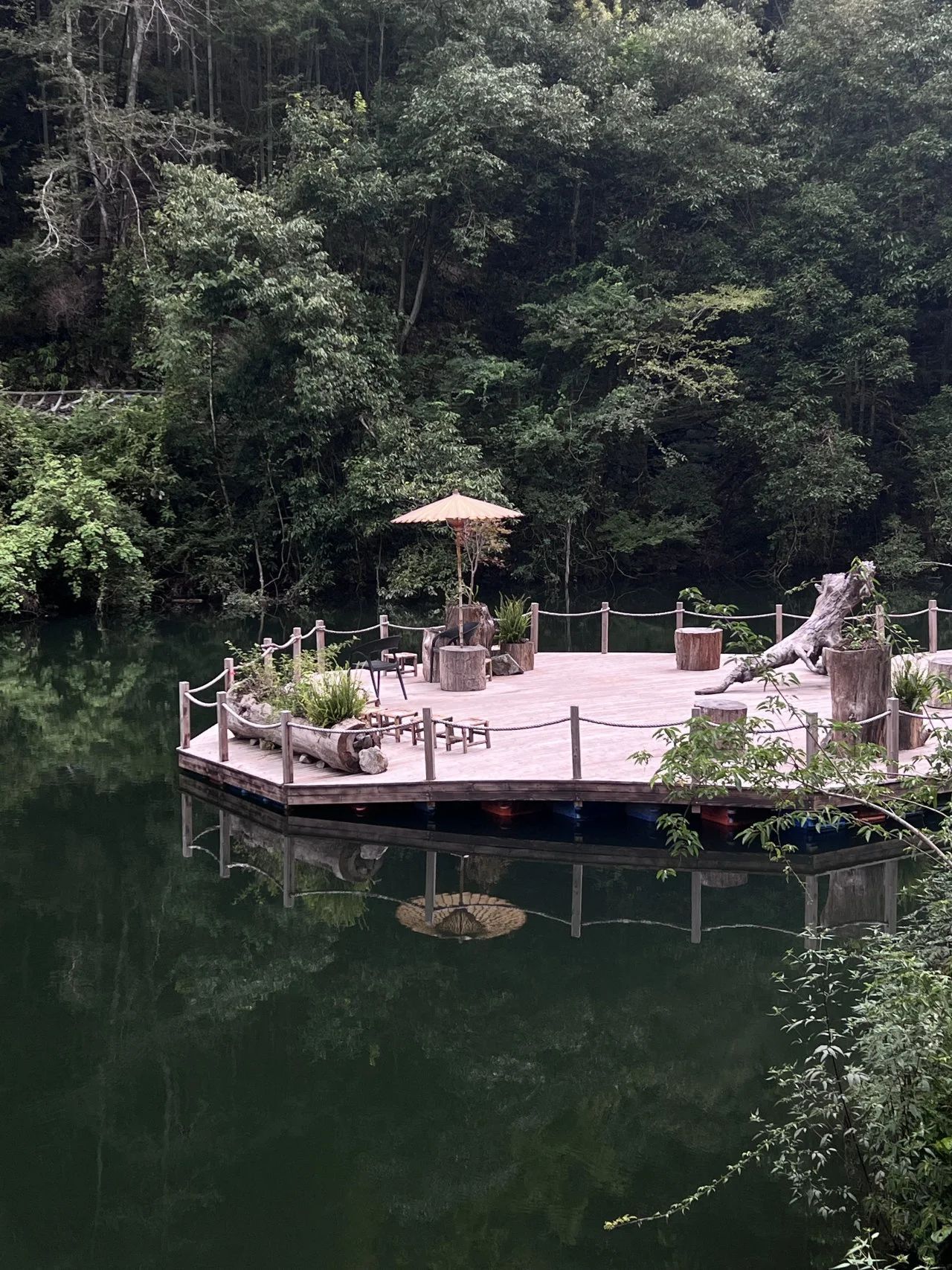 吃过午饭、办理入住后,我们前往自然岛。走过树荫,走过草坪,走过河流,我们来到了二桥漂流的起点。大家在竹筏上悠然自得,放眼望去,云水悠悠;低头望望,水流清透舒缓。黄昏时大家抵达石头岛,闻着咖啡的焦香,观云卷云舒。晚餐结束后,大家纷纷前往丽水古街游览。灯笼高挂河水静流,河边还有售卖古法姜糖的小铺和颇有情调的小酒馆。