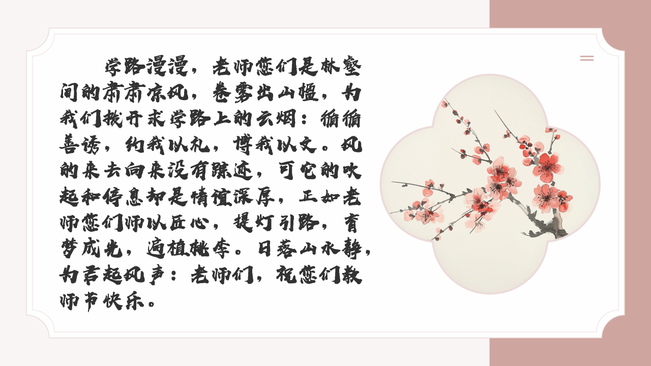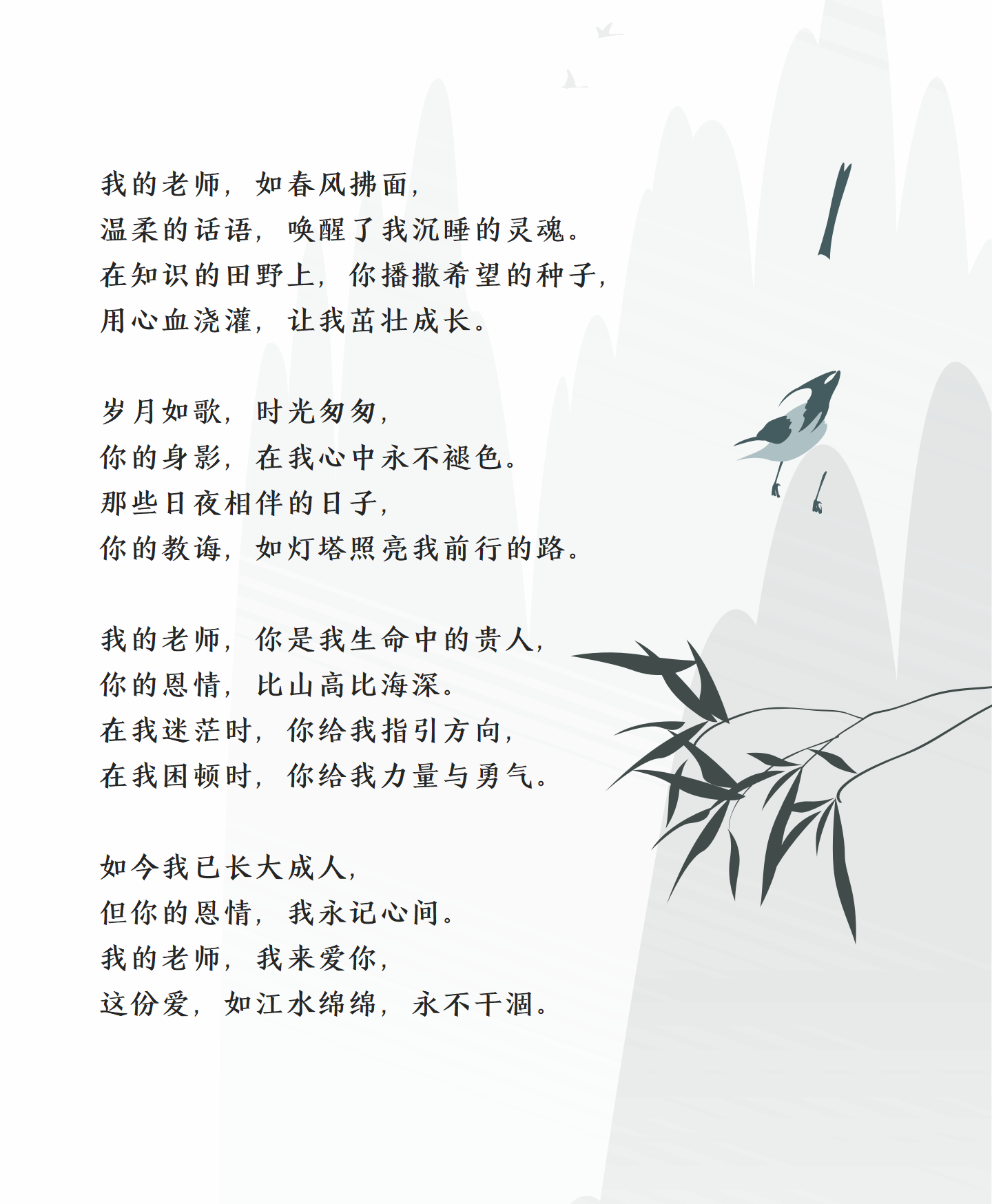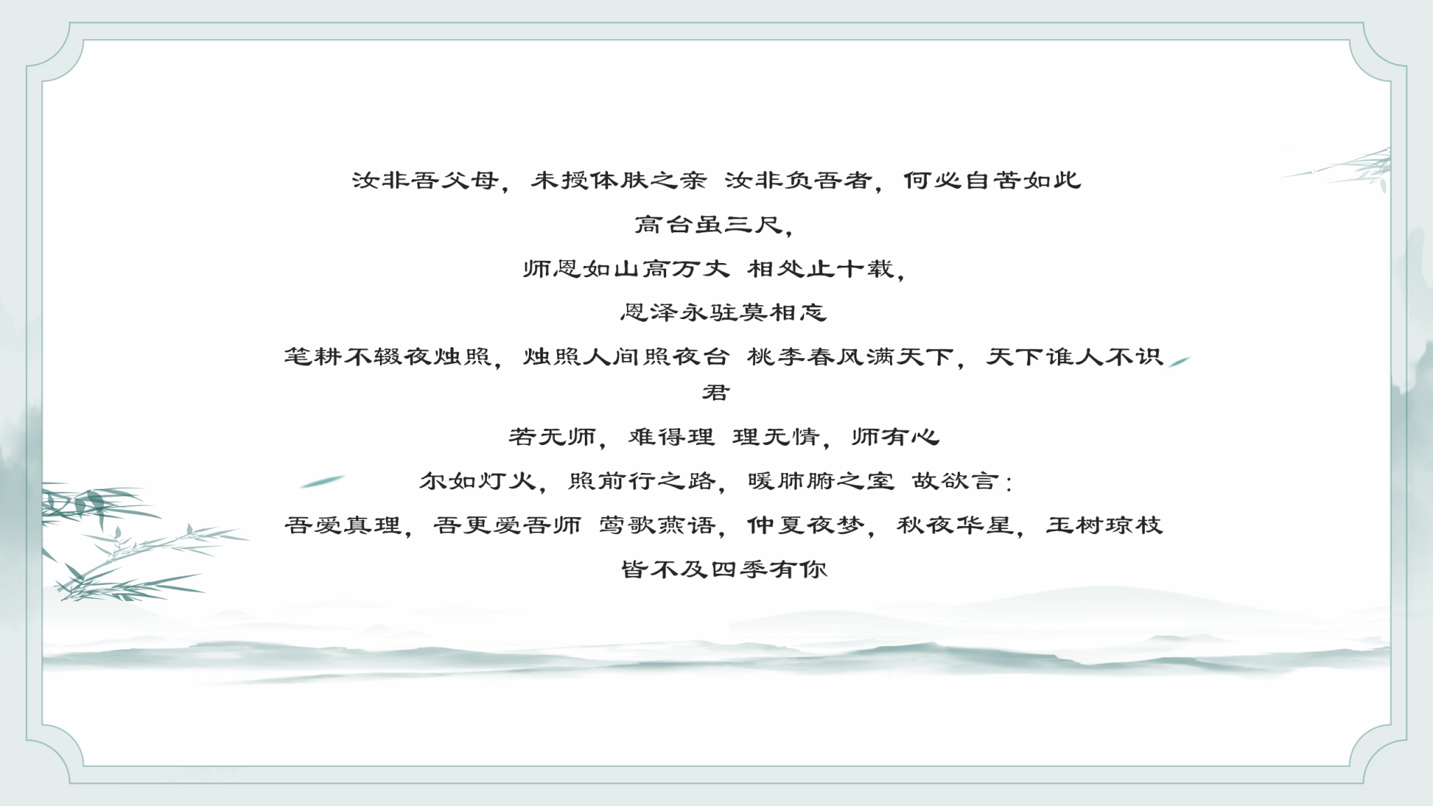 在我们的人生道路上,除了父母的养育和教育以外,还有一群特殊人在我们的青春道路上留下了身影,用语言播种,用彩笔耕耘,用汗水浇灌,用心血滋润,这群人就是我们的老师。