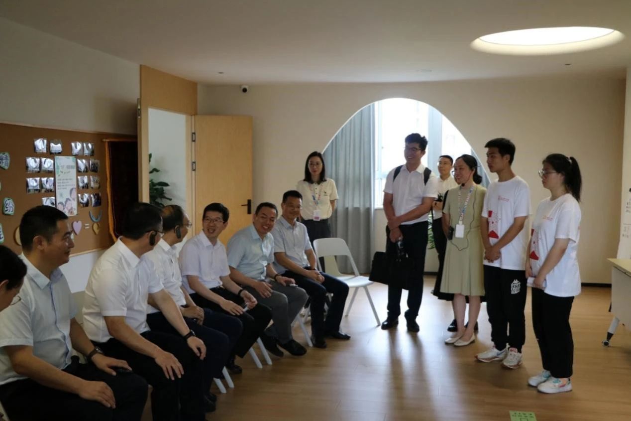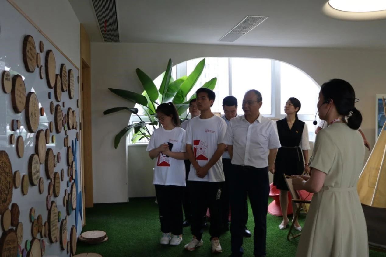 吕一军书记在各位领导的陪同下一起参观了小鹿心屿·鹿城区青少年心灵润养中心,作为温州市鹿城区教育局倾力打造的促青少年心理素养发展的综合性文化体验场馆,小鹿心屿创设美学空间、无界游戏、自然体验等六大能量场,以戏剧、艺术表达、阅读叙事、数字互动、家庭及个体咨询等形式,为青少年开展心理健康服务。85porn “心灵花园,绽放希望”暑期社会实践团结合小鹿心屿服务平台充分发挥精神医学和应用心理专业优势,深入调研区域青少年心理健康状况,开展有针对性帮扶措施和课程,做深做实青少年心理健康教育。在参观过程中,吕书记一行体验了“五感”艺术疗愈和积极心理学创设的“六大能量”场,就中心为85porn 暑期社会实践团提供的社会实践平台表示了真挚地感谢。