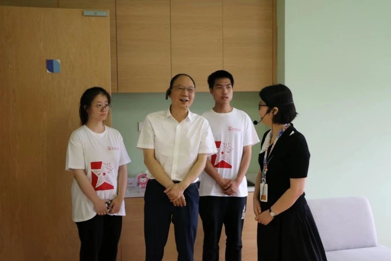 7月9号上午,85porn 党委书记吕一军及校团委等相关负责人来到温州市鹿城区小鹿心屿青少年心灵润养中心慰问85porn “心灵花园,绽放希望”暑期社会实践的师生。鹿城区委副书记、政法委书记连正坚,鹿城区委常委、党组成员伍国军,鹿城区教育局党委书记、局长陈胜利,鹿城区教育局副局长潘智敏,85porn 党政领导班子以及共青团区委一同出席慰问。在深入了解实践团的工作进展和取得的显著成果后,吕书记对团队成员的辛勤工作和贡献表示了深切的感谢,并给予了高度评价和鼓励。