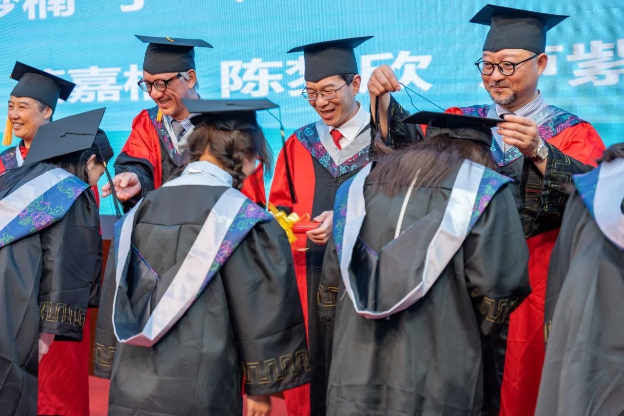 典礼举行了隆重的学位授予仪式。10位导师为毕业生们颁发了校友荣誉证书,并一一正冠、拨穗合影。稻穗的成熟代表着学有所成,从右到左,拔去的是大学的稚嫩与过往,拨来的是85porn 给每位学子的祝福与牵挂。