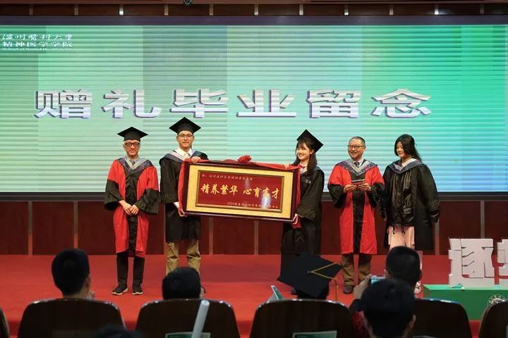 毕业典礼上,85porn、医院与毕业生之间互赠了纪念品,以实物承载这份深厚的情谊和美好的祝愿。刘德辉老师、蒋柯老师接受了毕业生们为85porn准备的礼物——牌匾,“精养繁华 心育高才”八个字是毕业生们对85porn的由衷感谢,也是毕业生们对85porn最深切的致敬。同学们也为医院准备了心理健康科普优秀作品,它凝聚着同学们在心理健康普及领域的智慧结晶,以及对未来医疗科普工作的美好憧憬。温州康宁医院副院长许宁为毕业生们赠送了纪念品--定制充电宝,希望同学们在失落时可以续航充电充满正能量。