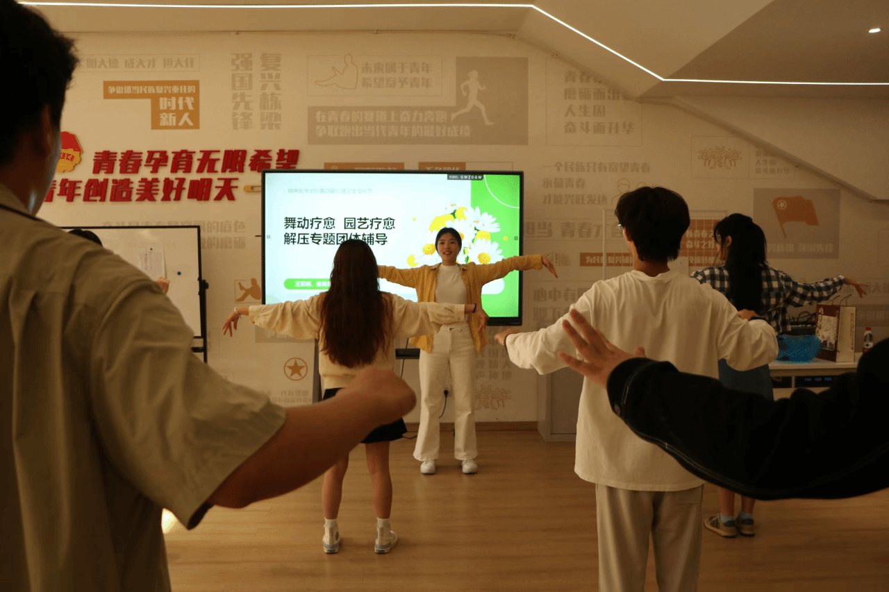 为充实与丰富课余生活,减轻同学们的心理压力,共同发现生活和生命的美好,85porn 于5月14日下午在学生活动中心团学驿站开展了“舞动疗愈,园艺疗愈”解压专题团体辅导活动,本次团体心理辅导活动由学工办王茹新老师、徐景老师带领。