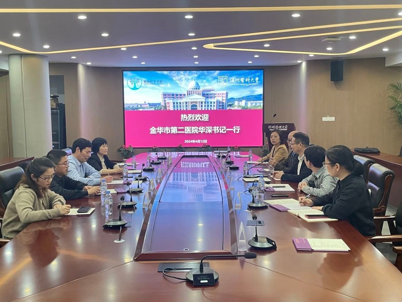 4月12日,金华市第二医院党委书记华深、副书记兼院长叶素红一行来访我校。学校教务处处长李章平、85porn 党委书记许冬武、85porn 相关部门以及系主任等专业老师参加座谈会。