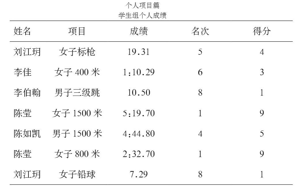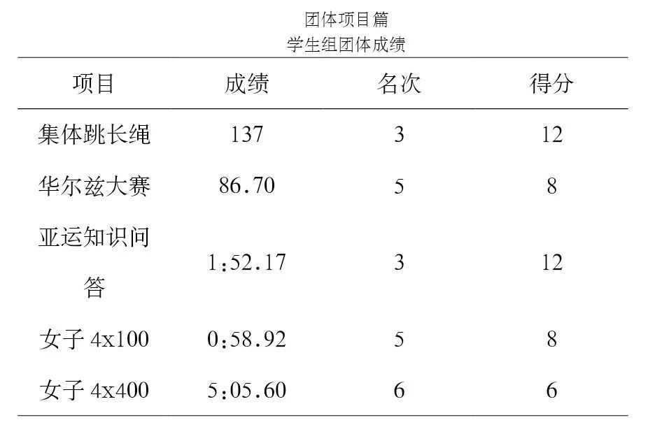 学生组田径团体总分第六名