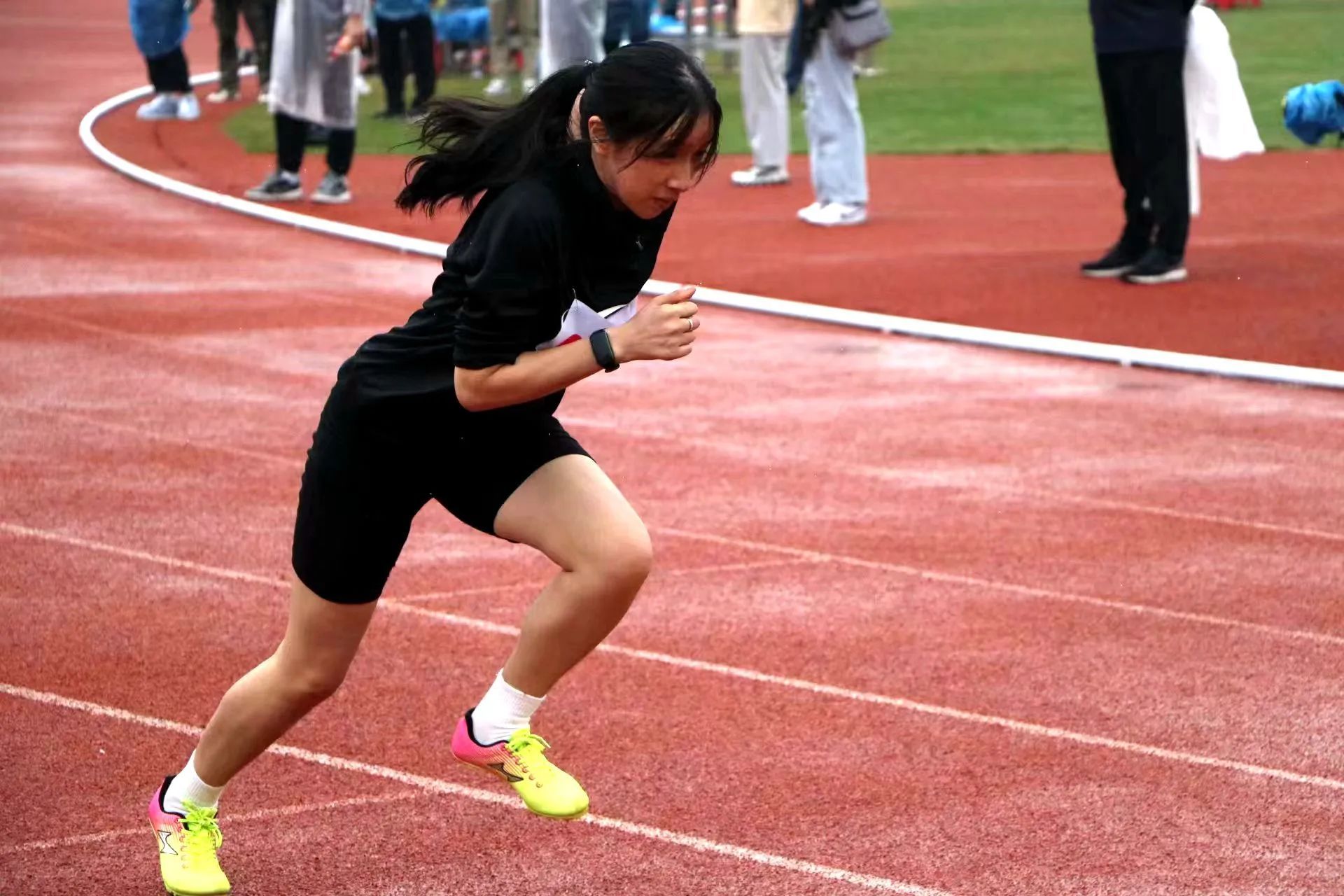径赛的赛场上,带着细雨的丝丝凉意,引出的却是运动员们心头的阵阵热意。