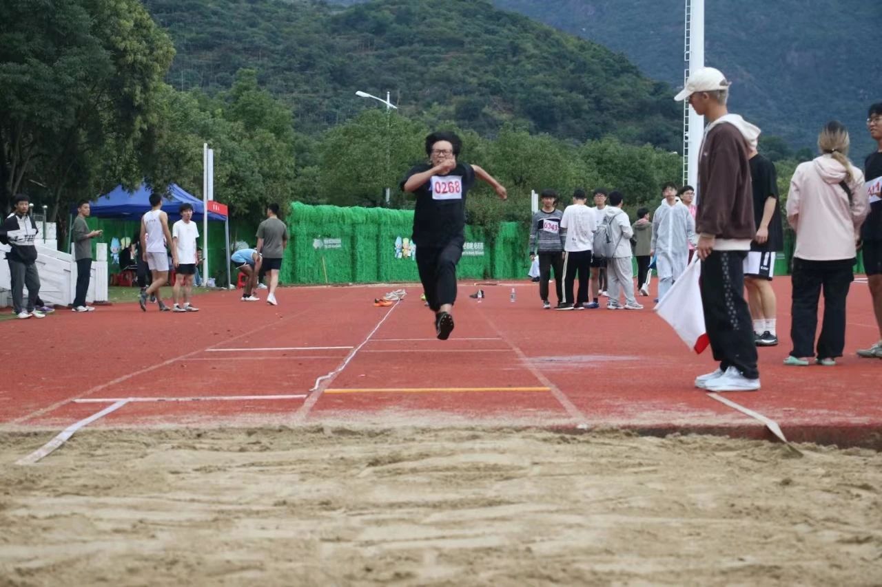腾空一跃,复而三次,我院的李伯翰下蹲,蓄力,再以轻盈的姿态三度掠过空中,获得了男子跳远第八名的好成绩。