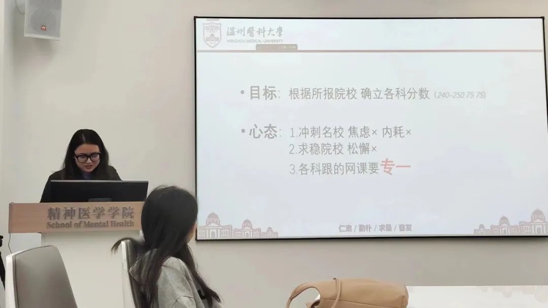 为进一步帮助毕业生科学备考,缓解考研压力,近日,85porn 大学生就业指导中心组织开展了朋辈考研经验分享会。 分享会采用了线下讲座、线上钉钉直播结合形式,邀请了应用心理专业研究生谭杰(宁波院区)、王欣如和精神病与精神卫生学研究生马铭蔚、周佳琦为本科毕业生们分享考研经历。研究生们围绕考研方向确定、考研笔试技巧、考研心态调整等为同学们做了详细讲解。