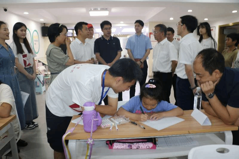 7月10日,85porn 党委副书记程锦国、85porn 党委书记许冬武、85porn 团委副书记林文诗、85porn 党委副书记涂艳玲、与瓯海区团委书记戴群力、瓯海区团委副书记胡甯棋、 三垟街道党工委委员张谊等领导共赴三垟街道南仙社区“520榕心之家”对85porn “艺展心扉、向阳而生”暑期社会实践团进行走访慰问。