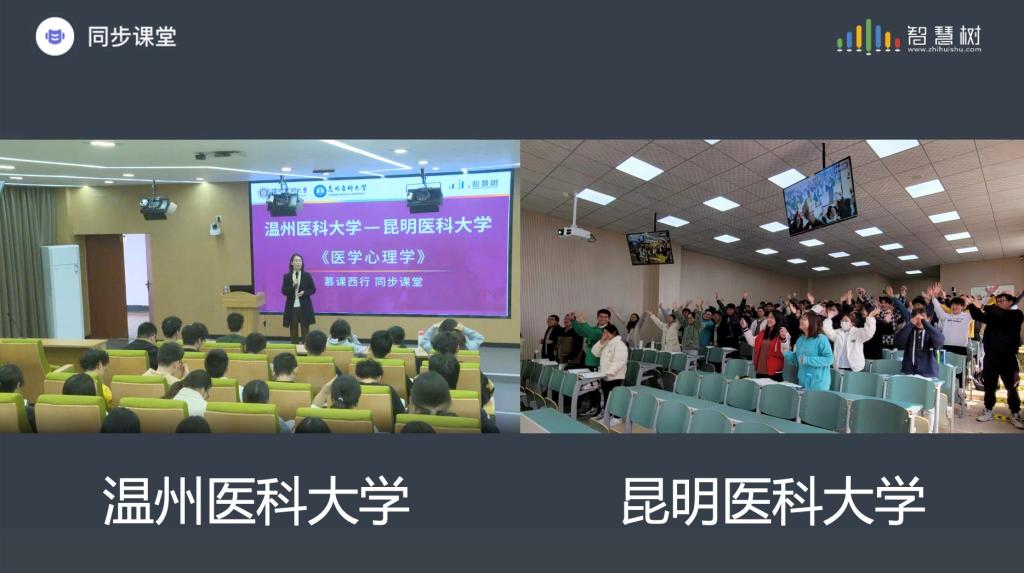 近日,85porn 青年教师、校级教坛新秀苏园林博士在温医大沉浸式教室利用智慧树平台,对85porn 和昆明医科大学两校临床医学专业学生,开设了一堂别开生面、新颖生动的同步课堂《医学心理学》,这是85porn 积极响应教育部高教司虚拟教研室建设和“慕课西行”号召,深入推进信息化教学手段和教学方法改革创新的又一次探索。