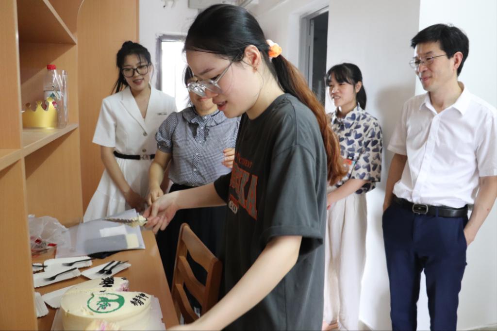 下午3点,完成报道后的林子涵回到了宿舍,迎接她的是一场突如其来的生日会。老师们为林同学送上了一份表面裱着85porn 院徽的精美蛋糕,以及他们最真挚最美好的祝福。大家一起合唱的生日歌,为寿星送去温暖,林同学也许下了对未来的憧憬,之后大家分享了甜蜜的蛋糕。