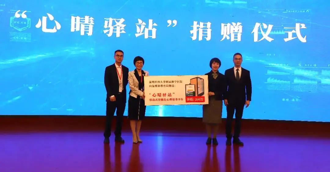 在此次论坛上,温州康宁特别举行捐赠仪式,将“心晴驿站”终端捐赠给温州市教育局,希望以自身的专业力量,协助学生心理问题的早发现、早干预、早诊疗,为温州市儿童青少年心理健康体系的建设做出贡献。
