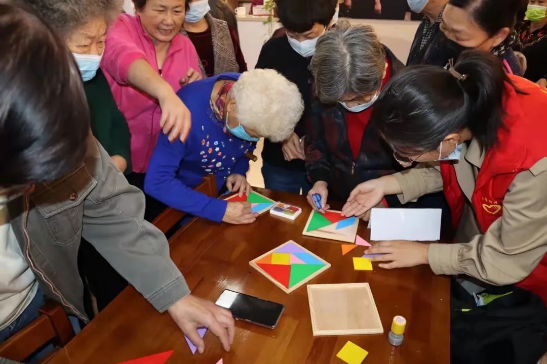 除手指操之外,我院学生还开展了写毛笔字、数字记忆、剪纸和拼七巧板等活动,与老人们亲切互动交流,丰富了他们的精神生活。此外,为深入贯彻与响应党的号召,活动现场还安排了富有特色的党史问答活动,向老人们宣传了党的历史政治知识,提升了党史在老年群体中的普及性。在问答比赛中,老人们踊跃参与,答对题目的老人无不感觉非常自豪。在此次活动中,我院学生还准备了丰富的礼品来激发大家的积极性,老人们既收获了丰富的知识、有趣的体验,还拿到了精心准备的礼品。大家互相笑着交谈,活动在一片欢声笑语中画上圆满句号。