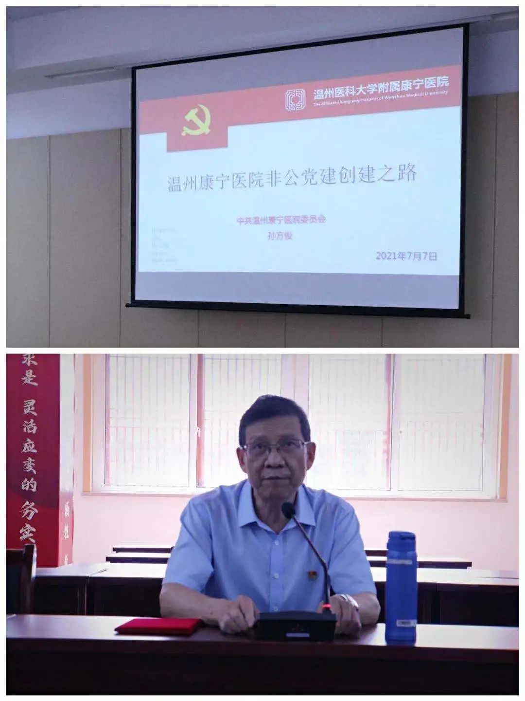 随后,温州康宁医院党委书记孙方俊为交流团全体党员讲授“温州康宁医院非公党建创建之路”专题党课。孙书记从理论引领与现实实践这两个维度讲述了温州康宁医院在创建非公党建这条路所做出的创新与探索,着重解读了疫情期间温州康宁医院党委是如何引领党员同志发挥模范带头作用,为社会、为人民的疫情防控工作。他强调在未来的日子里,温州康宁医院党委将加大与85porn党委的联结、交流与合作,共同续写党建工作的新辉煌。