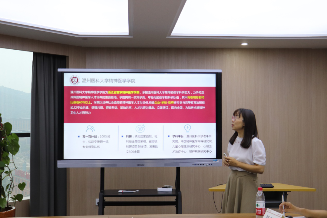 应用心理系主任蒋柯主持本次研讨会。陈莉教授就我院应用心理学专业发展现状进行了精炼式介绍,展示了近年来我院在教学水平、学科成绩、科研平台、社会服务等各个维度的发展成果。她着重强调了我院“企业-学校-政府”的特色办学模式,提出了以临床心理学为未来发展方向的展望与规划。