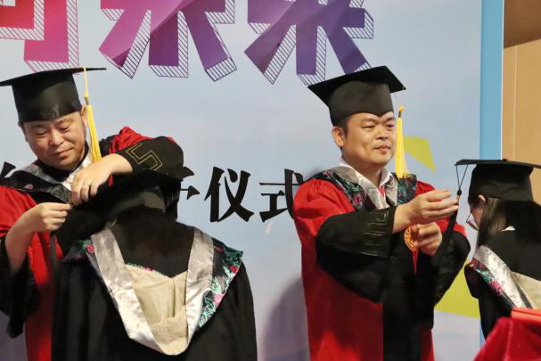 典礼举行了隆重的学位授予仪式。心理系教师代表为毕业生代表们颁发校友荣誉证书,并一一正冠、拨穗合影。稻穗的成熟代表着学有所成,从左到右,拔去的是大学的稚嫩与过往,拨来的是85porn 给每位学子的份份祝福与牵挂。