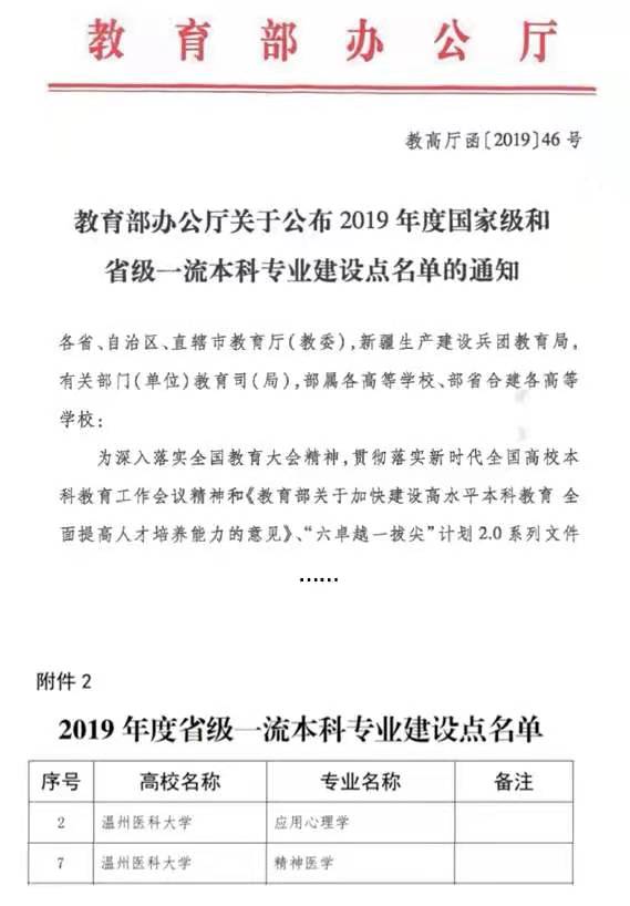 应用心理学和精神医学专业入选省一流专业