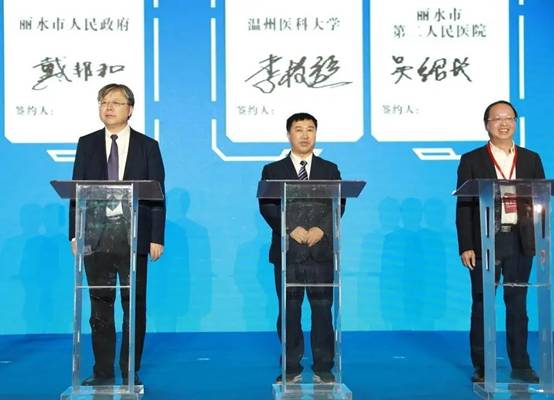 图|李校堃校长与丽水市第二人民医院党委书记吴绍长签署协