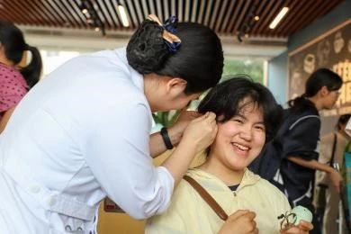 踏入医院,在医院工作人员的带领下,同学们参观了医院,同时体验了一系列特色服务。在体脂检测区域,专业设备迅速准确地给出身体各项指标数据,为健康评估提供依据;耳穴压窦活动则充满中医特色,通过对耳部穴位的刺激,达到调节身体机能的效果。