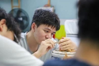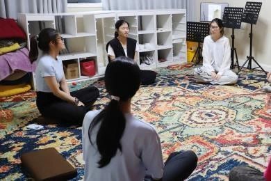 在儿童青少年心理中心,同学们分成三组,分别体验了音乐、泥塑、正念活动,通过音乐团体放松身心,参与泥塑创作表达情感,体验正念冥想感受内心世界,这场沉浸式的体验活动,让同学们直观感受到心理治疗的多元魅力。现场还设置了心理小知识问答环节,学生们在感受艺术魅力的同时学习课堂以外的心理知识。