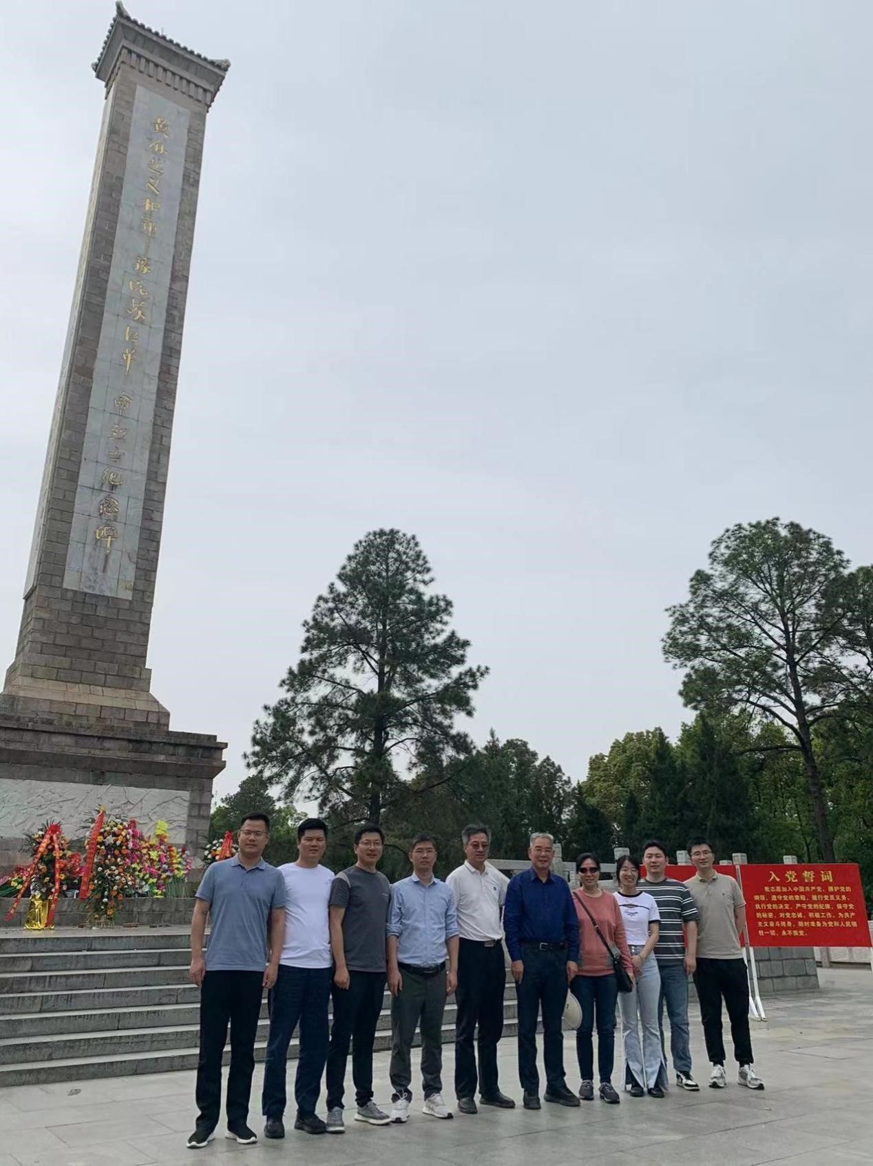 4月20日下午,全体党员同志不顾旅途疲劳,直奔麻城市烈士陵园,接受革命传统教育。党支部一行在“黄麻起义和鄂豫皖苏区革命烈士纪念碑”前向革命先烈肃立默哀,瞻仰革命碑文,深刻体会了鄂豫皖苏区军民不怕牺牲、百折不挠的革命斗志,表达了对革命先烈的崇高敬意和深切缅怀。