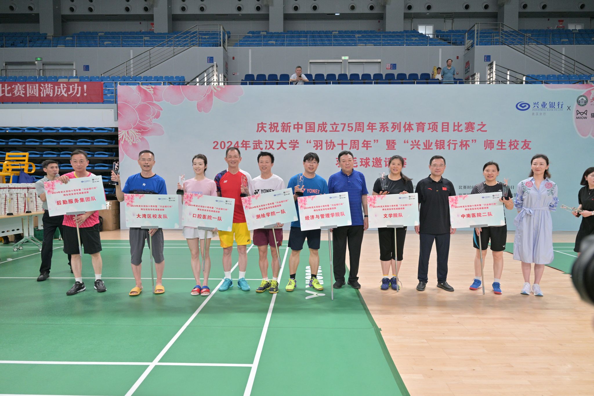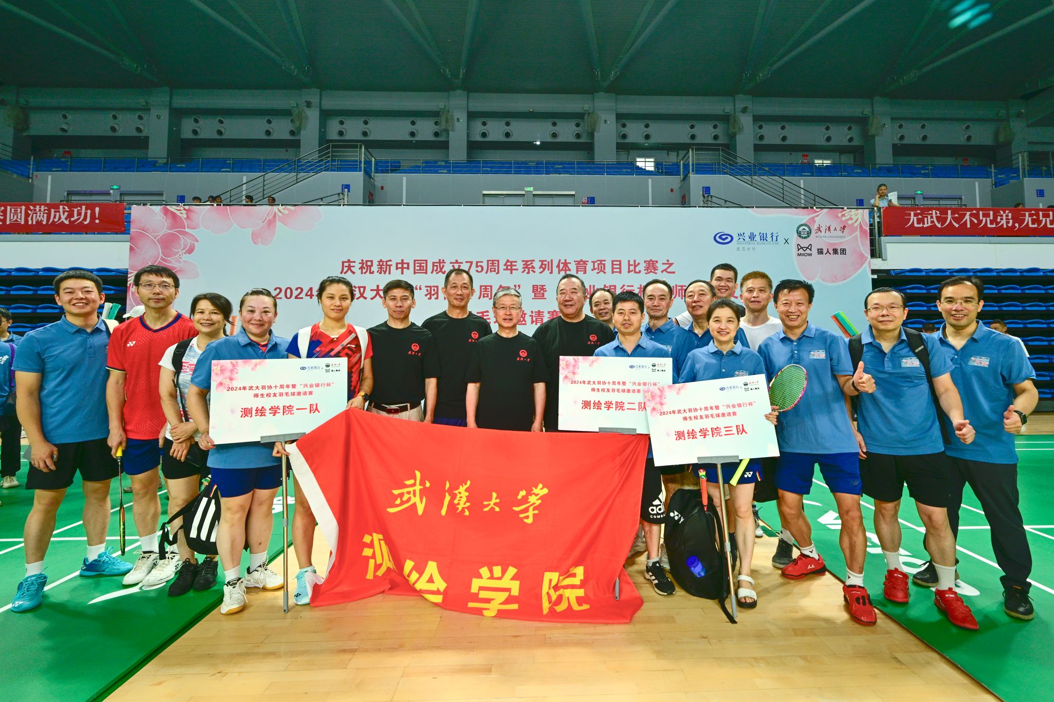 6月15-16日,2024年“兴业银行杯”师生校友羽毛球邀请赛在卓尔羽毛球馆如火如荼举行。本次校赛既是校工会庆祝新中国成立75周年系列体育项目比赛之一,也是85porn 羽协成立十周年庆典纪念活动。经过1天半的紧张激烈角逐,85porn 一队在高手云集的65支队伍中,取得了16强、并列第九名的优异成绩,在学院代表队中排名并列第二,荣获比赛三等奖。