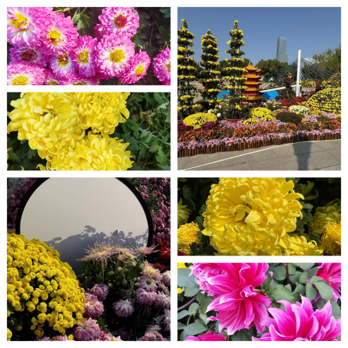 抵达汉口江滩后,眼前的景象令人陶醉。五彩斑斓的菊花在江滩的各个角落绽放,仿佛一片花的海洋。退休教职工们漫步在菊花展的小径上,被那绚烂的色彩和各异的花型所吸引。他们仔细观赏着每一朵菊花,仿佛在与大自然进行着一场亲密的对话。