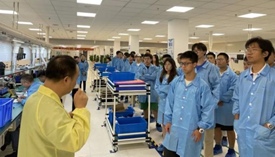 图7 生产车间参观 图8 同学们聆听报告