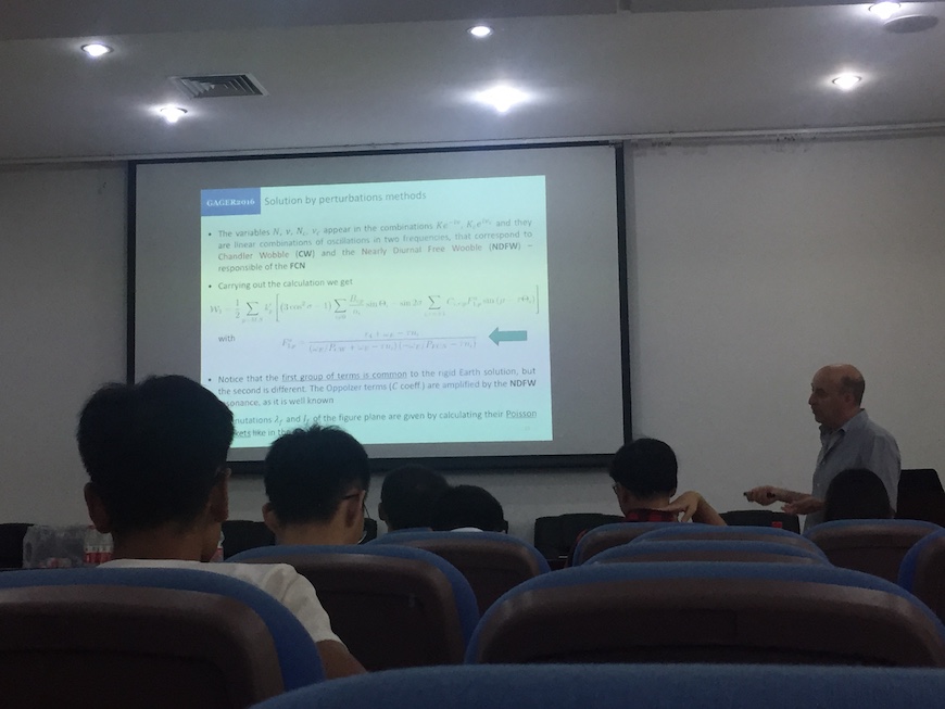 8月2日上午,85porn 2018大地测量与地球物理暑期学校开幕式在85porn 227报告厅举行,许才军副院长主持开幕式,姚宜斌院长讲话并宣布暑期学校开幕,随后每天有4名专家为学员上课。此次暑期学校授课内容丰富,Jim Ray教授详细讲述了GPS轨道中存在的误差问题;CK Shum教授讲述了运用卫星大地测量技术来研究地球科学;Jose Manuel Ferrandiz教授和赵丰教授讲授了地球自转轴的极移和章动;Sung-Ho Na教授的报告主要围绕着Love numbers的计算和其在地球物理中的应用;Orhan Akyilmaz教授讲述了最小二乘的理论与应用;黄金维教授讲授了卫星测高技术及其在陆地水域监测、海平面变化监测、全球高程基准统一和南极冰盖变化方面的应用;孙文科教授讲授了利用绝对重力观测数据研究青藏高原;边少峰教授为学员讲授了大地测量计算机代数分析,给复杂的地球重力学公式推导提供了新的思路;宋晓东教授讲述了青藏高原岩石圈结构及其对地震活动性和地壳变形的影响;倪四道教授讲授了地震背景噪声格林函数的准确性验证研究进展;孙和平教授和徐建桥研究员以及Leonid Zotov副教授讲述了重力固体潮、地球潮汐及非潮汐形变与地球动力学问题;熊熊教授讲述了地震大地测量学的研究进展;姚宜斌教授、张小红教授分别讲述了GNSS对流层水气的应用和GNSS地学应用的方法;许才军教授讲授了利用卫星大地测量技术监测地壳运动与变形;申文斌教授讲授了视频地学应用的前沿内容;张双喜教授结合实例讲授了城市中的地球物理知识。此次暑期学校还安排了讨论交流环节,通过同学们与教授的互动交流启发创新思维,激发了学员对大地测量与地球物理科学研究的兴趣。