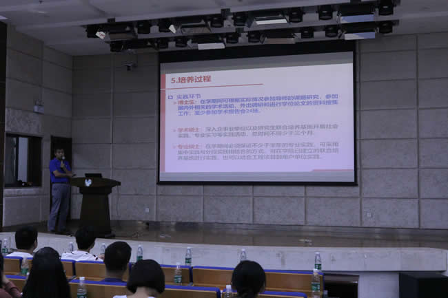 研究生教学秘书朱李赟老师从研究生教学工作简介、研究生系统的应用、导师系统审核工作三个方面介绍了研究生在教学与培养过程中可能会遇到的问题。研究生辅导员褚丽丽老师从学院基本情况、组织、纪律、安全、奖学金、学术活动、文体活动等方面对同学们关心关注的相关事项进行讲解,让同学们对学校学院的规章制度和活动有了更多的了解。
