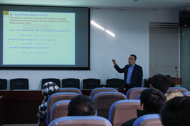 12月21日,德国斯图加特大学大地测量研究所蔡剑青博士应邀来学院作了题为“Converted Total Least Squares method and different polynomial models for coordinate transformations”(转化整体最小二乘法及其优化多项式模型在坐标转换中的应用)的学术报告。