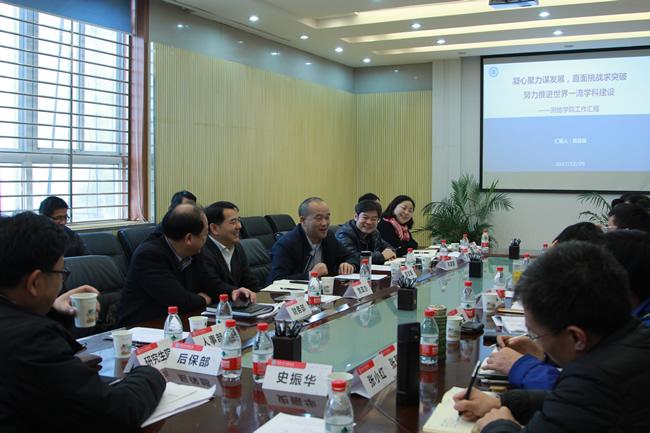 院长姚宜斌做工作汇报。他重点从现状与优势、机遇与挑战、问题与举措三个方面进行了介绍和说明。窦贤康校长肯定了近些来年学院改革和发展成就,就学院面临的问题和困难给予积极回应,并对于学院和学科未来的发展提出指导意见。他表示,学校会全力支持学院的改革发展。他强调,学校学院发展的关键在于高水平人才队伍,人才培养的关键在于质量。他要求学院要紧紧围绕“双一流”建设目标,牢牢抓住人才队伍建设这个关键,找准人才引进的路径,努力培养和着力引进测绘学科、地球物理学科以及新兴交叉学科等方面的高端人才。
