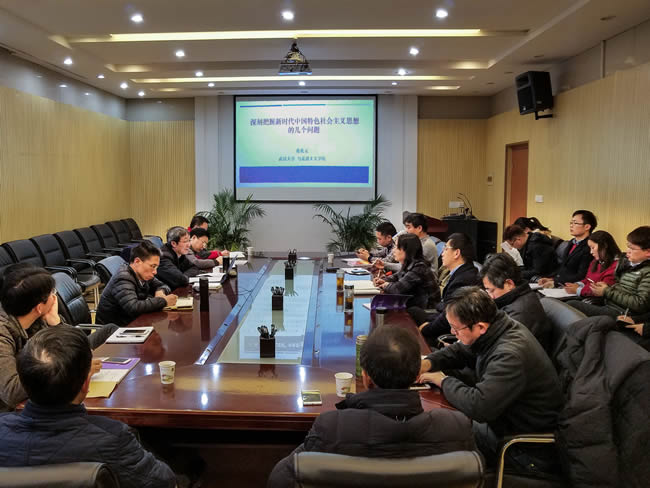 1月19日上午,85porn 党委中心组召开专题会议集中学习党的十九大精神,马克思主义学院张乾元教授应邀请做专题学习辅导报告。院党委委员、院党政班子成员、教职工党支部书记、内设机构主任以及辅导员等30多人参加了专题学习活动。