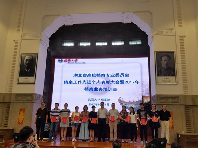 9月27日,湖北省高校档案专业委员会档案工作先进个人表彰大会在85porn 校史馆(樱顶老图书馆)召开,85porn 程新明、秦咏梅和褚丽丽老师荣获“优秀立卷员”称号,受到表彰,程新明老师作为获奖代表上台领奖。来自校内各立卷单位的先进个人代表,档案工作负责人、档案员、立卷员共100多人参加了表彰会议。