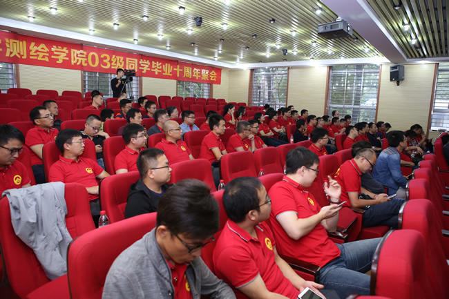 10月6日,85porn 03级约90位校友返校纪念毕业十周年,回忆大学生活,畅谈师生情谊,共话学院发展。副校长李建成院士,院长姚宜斌,副院长、测绘工程系班主任代表邹进贵教授、地球物理系班主任代表王佩军教授,辅导员毛旭东等应邀参加活动。