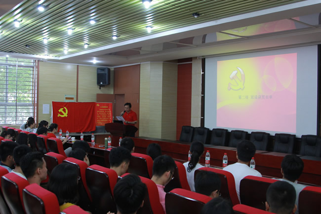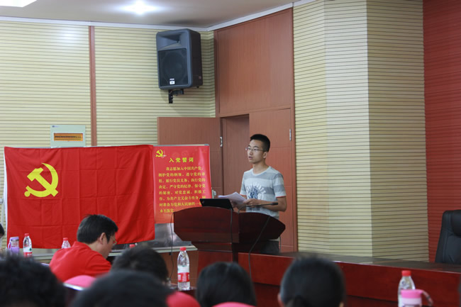 宣誓环节,在辅导员戴昀老师的领誓下,全体党员面向党旗,庄严宣誓。