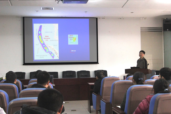 1月12日,加拿大地质调查局太平洋地学中心资深研究员王克林应邀为85porn 师生做了题为“Learning from crustal deformation associated with the Mw 9.0 2011 Tohoku-oki earthquake” 的学术报告,学院部分师生聆听了报告。