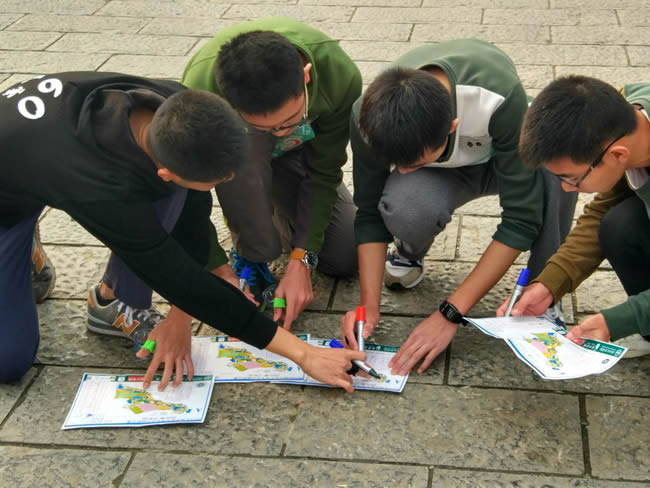 据悉,定向越野(cross-country orienteering)是定向运动的主要比赛项目之一,要求运动员借助标绘有若干个比赛规定检查点和方向线的地图及指北针,独立选择路线,依次寻找各个地面检查点,用最短时间完成赛程。定向越野运动与测绘专业息息相关,队员们必须熟练掌握和运用地貌辨析、制图绘图、等高线识别等测绘学知识和技能。