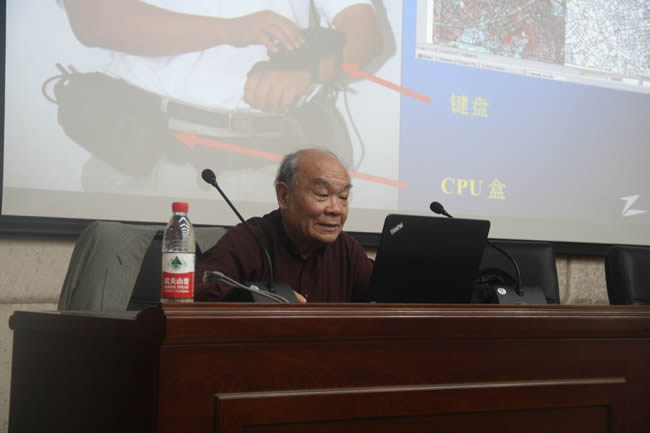 接着,陶教授接过了话筒,娓娓道来自己50多年的教学历程,话语中洋溢着他对测绘学科教育工作的热爱。也正是出于这份热爱,82岁的陶教授选择在退休后也依然坚持活跃在各讲座的讲台上。陶教授的敬业精神让在座的同学肃然起敬。