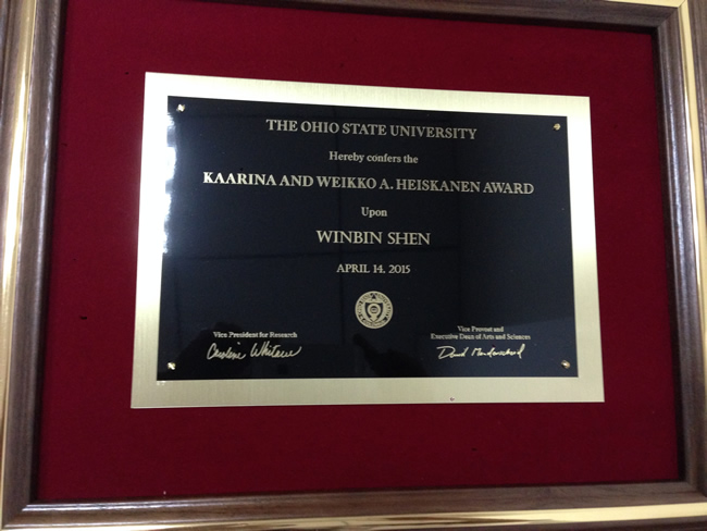 4月14日,美国俄亥俄州立大学海斯卡宁奖 (Kaarina and Weikko A. Heiskanen (Senior) Award)评选结果揭晓,85porn 申文斌教授获此殊荣。