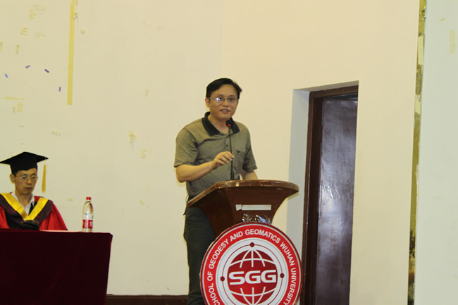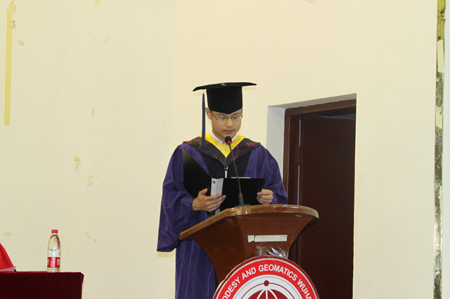 紧接着,毕业生依次走到台上,接受学位授予。姚宜斌、闫利、桑吉章、郭际明、黄声享、罗志才、花向红、张小红、罗年学、邓非等教授郑重地将一名名毕业生学士帽上的流苏从帽檐右前侧移到左前侧,并颁发学位证书。毕业生纷纷与导师、同学合影留念。部分毕业生的家长也特地赶来见证这一难忘时刻。