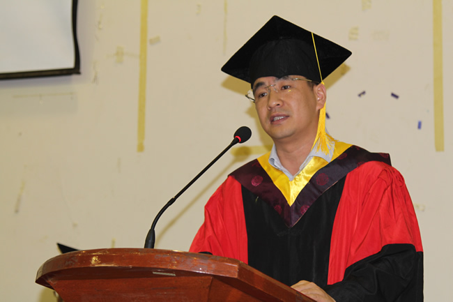 姚宜斌院长讲话。他首先祝贺全体毕业生顺利完成学业,并深情寄语毕业生“珍惜韶华,不负今生”,恪守做人本分,保持谦卑与感恩,保有一份好心情;勇于超越自我,竭尽全力发挥潜能,享受为梦想而努力的过程;淡然面对人生中的各种挫折与无奈,积极把握每一个可能的机会提高自我,在困难中坚守希望,不忘初心,执着前行;在幸福中保持清醒,坚守本份,不迷失自我”。他勉励同学们继续加油,并祝愿同学们都能收获幸福的人生。